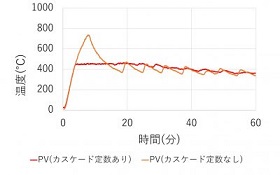 1 차측의 온도가 안정 될 때의 2 차측의 온도를 파악합니다. 예를 들어 1 차측 200 ℃ 일 때 2 차측은 350 ℃ 정도로 안정되어 있었으므로, 100 ℃ 여유를 갖게 한 450 ℃가 최대가되도록 abc를 결정합니다.| 매개 변수의 역할 : a 변동 폭 b : 오프셋 c : 기울기 | |