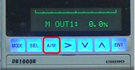 | DB1000의 "A / M 키 '를 사용하면 매뉴얼 (수동) 제어로 전환 할 수 있습니다. 전면에 독립적 인 키로 배치하여 긴급 작업이 가능한 안전 안심 설계가되어 있습니다. 수동 제어 상태에서 ∧∨ 키로 출력을 변경할 수 있습니다. ① A / M (단 누름) ② M이 깜박입니다 ③ ENT 키로 M이 점등 |