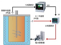 아래의 예에서, 제어 온도는 용기 내의 온도입니다.이 용기 내의 온도 (내부 온도)를 받을 조절계를 1차 조절계라 합니다.