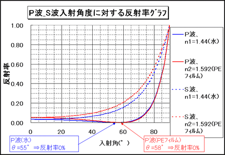 (아래 그래프 참조) 이 그림을 보면, P 파의 반사율이 특정 각도에서 0 %로되어있는 것을 알 수 있습니다. 이 각도는 편 광각 (브 스타 각도)이라고하며 다음 식으로 표시됩니다.