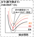 ① 신축 진동에 <흡수에 의한 에너지 흥분> <물 분자 모델의 신축 진동 흡수> 물 분자 모델, 산소 O와 수소 H 사이의 진동 (신축 진동)에 동일한 주파수의 적외선이 닿으면 그 적외선은 흡수되고 여기 에너지로 변환됩니다 이때의 흡수는 1.43μm, 1.94μm, 3μm 등에 나타납니다. 이것은 소리의 배음과 마찬가지로 파장 (진동수)에 따라 여러 나타나 일반적으로 파장이 장파장으로됨에 따라 흡수는 강해집니다.