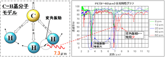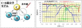 앞에서 언급한 바와 같이 특정 파장의 적외선이 분자(원자)에 흡수되는 특성을 가지고 있습니다. 이 파장은 그 분자를 구성하는 원자와 그 결합 상태에 의해 흡수되는 파장이 달라집니다.