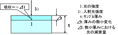 감쇄량⊿I=-α・I・⊿t  (α;흡수계수,물질,파장으로 결정되는 정수)