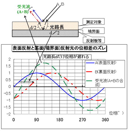 적외선도 같고, 근적외선 (0.7 ~ 3μm)에서는 일반적으로 15μm 이하의 얇은 영역이되면 근적외선은 필름이나 도공 막의 표면 반사 뒷면 (경계면) 반사광이 그 광로 길이 차이에 의한 빛의 위상차에서 서로 간섭하는 현상을 볼 수 있습니다.