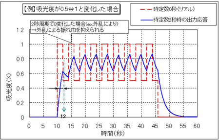 ①의 2 파장 비율 연산은 흡수량을 기준이되는 파장의 비율을 취하는 것으로, 외란 요소가되는 외래광 · 측정거리, 분진, 표면 상태의 변화 등의 광량의 절대 값 변동되는 외란을 가급적 줄일 수있는 이점이 있습니다.