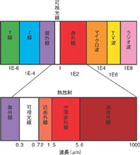 열방사은 자외선 ~ 가시광선 ~ 적외선 영역 (그림 1)으로 나누어지며 열방사의 법칙(플랑크의 방사 법칙)으로 정의 되어 있습니다.