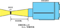 로 정해지며 ( ex. 10mm의 크기를 1000mm의 거리에서 측정 할 때 거리 계수 100 온도계를 선택합니다. )
