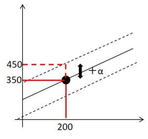 1 차측의 온도가 안정 될 때의 2 차측의 온도를 파악합니다. 예를 들어 1 차측 200 ℃ 일 때 2 차측은 350 ℃ 정도로 안정되어 있었으므로, 100 ℃ 여유를 갖게 한 450 ℃가 최대가되도록 abc를 결정합니다.| 매개 변수의 역할 : a 변동 폭 b : 오프셋 c : 기울기 | |