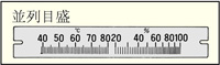 | 병기 눈금 | 입력 감도의 전환은하지 않고, 눈금판 만 이중 눈금으로 한 기기 단 분할 눈금 눈금판은 단 눈금에서 눈금 숫자 만 이중 이중 분할 눈금 눈금 선, 눈금 숫자도 2 배 ![]() |